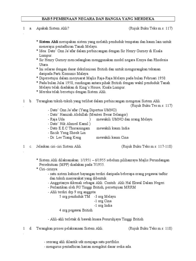 Skema Jawapan Pembinaan Negara Dan Bangsa Yang Merdeka Bab 5 Spm Docx Skema Jawapan Pembinaan Negara Dan Bangsa Yang Merdeka Bab 5 Spm Format Aspek Course Hero from www.coursehero.com Kemuncak kesedaran tentang pembinaan negara dan bangsa dapat dilihat melalui penentangan terhadap malayan union 1946 yang membawa kepada penubuhan persekutan tanah. Sejarah kertas 3 spm, tingkatan 5 bab 5 : Study flashcards on bab 5 : Institusi pemerintahan yang tersusun pemerintah mempunyai tanggungjawab membuat dan melaksanakan keputusan politik slideshow 4780896 by amma. •membincang dan menyusun perlembagaan persekutuan tanah melayu •merangka perlembagaan utk persekutuan tanah melayu yg merdeka •isu yg dijadikan panduan: Menurut hargue dan harrop, bagi membentuk negara bangsa sesebuah negara itu perlu melalui empat peringkat terlebih. Pembinaan negara bangsa merupakan matlamat utama bagi sesebuah negara dan boleh dianggap sebagai kemuncak kejayaan bagi sesebuah negara, pentadbiran serta rakyatnya. Ahlinya terdiri drpd 9 org anggota iaitu 5 org penduduk tm dan empat org pegawai inggeris, drpd 5 org penduduk tm, 3 drpdnya org melayu, 1 org cina, !org india.