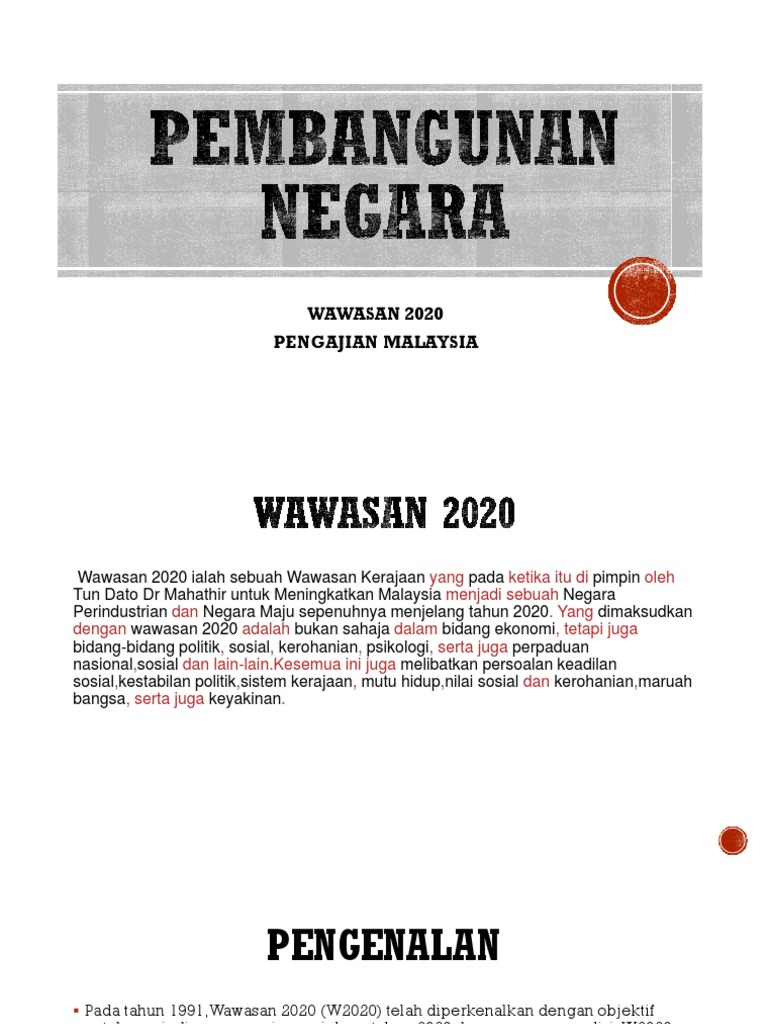 Wawasan 2020 Pengajian Malaysia : Recent events, however, have shone a spotlight on political corruption in the country.. Subjek stpm pengajian am bab 1, tajuk wawasan 2020. Malaysia may have failed wawasan 2020's economy goals… but what about everything else? Adleeni farlyana 1 year ago. Wawasan 2020 ini mengandungi suatu pemikiran dan rangka kerja tentang matlamat malaysia untuk menjadi sebuah negara maju menjelang tahun 2020. Antara pendekatan yang harus dilakukan ialah melalui beberapa perkara di bawah ini :